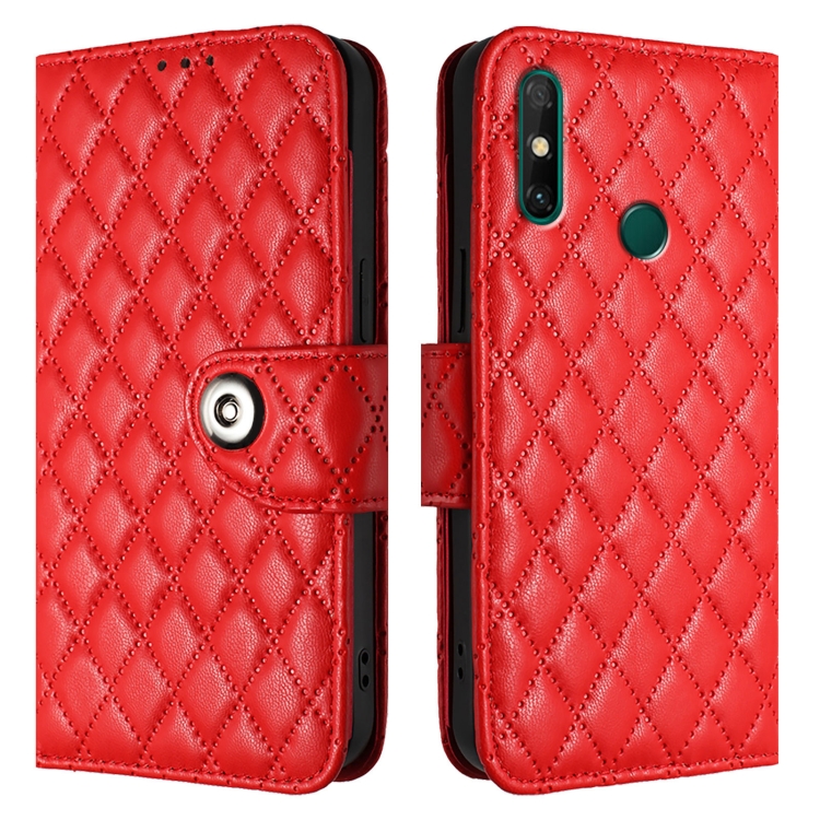 Funda de Cuero para Huawei P Smart 2021 con Tapa Textura Rombal y Cordón (Rojo)