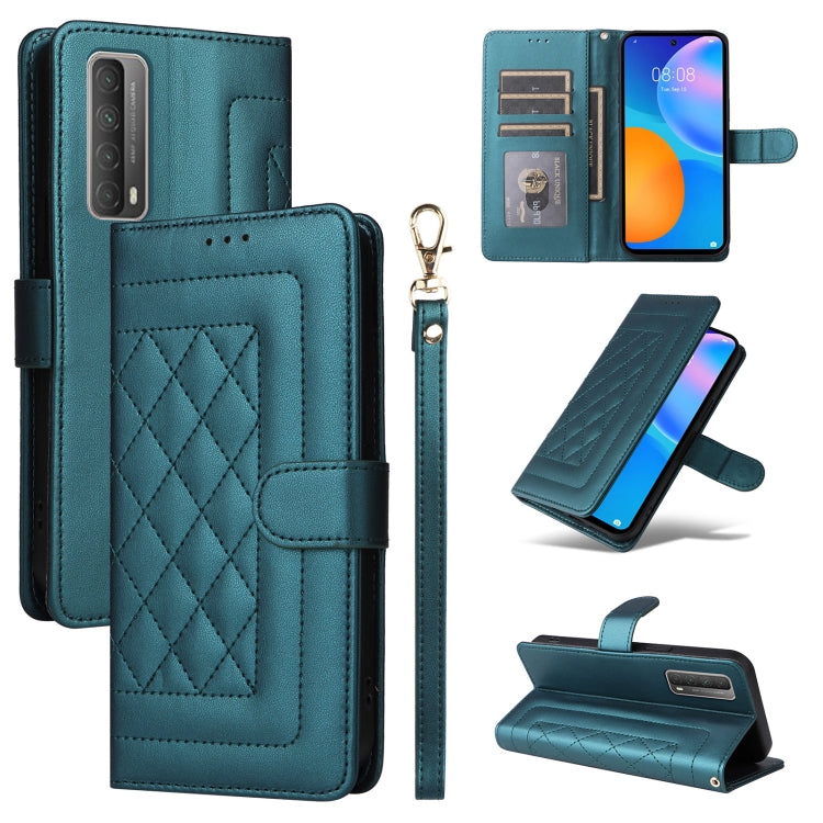 Funda para Huawei P Smart 2021 con Tapa de Cuero y Entramado de Diamantes (Verde)