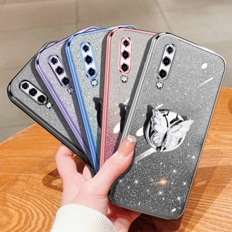 • 1x Funda TPU para Huawei P30 con Soporte mariposa y brillo degradado (Azul Sierra)