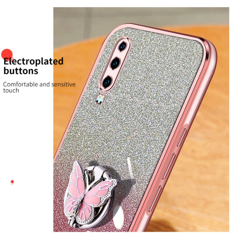 Funda TPU para Huawei P30 con Soporte Mariposa y Brillo Degradado (Azul Sierra)