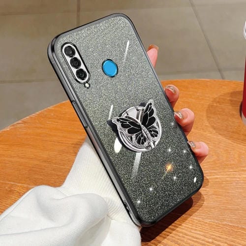 - 1x Funda para Huawei P30 Lite de TPU con Soporte de Mariposa y Brillo Degradado (Negro)