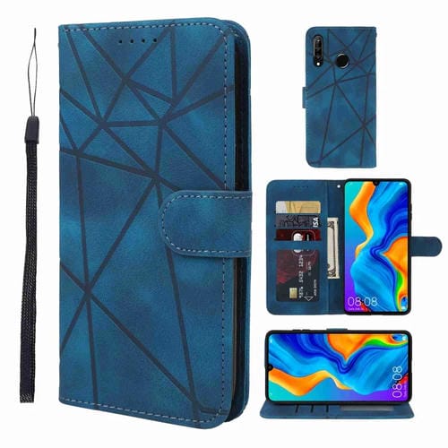 - 1x Funda de Cuero para Huawei P30 Lite con Líneas Geométricas (Azul)