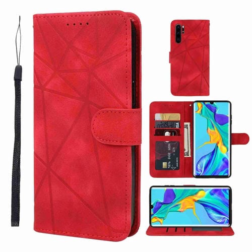 Funda de Cuero para Huawei P30 Pro con Líneas Geométricas (Rojo)