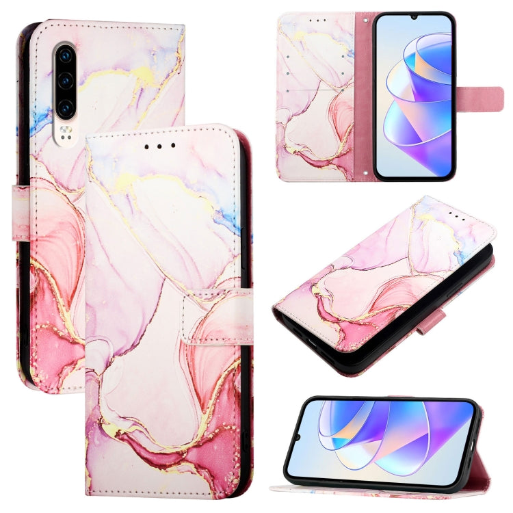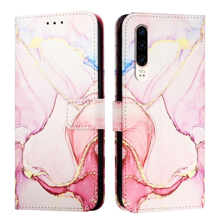 Funda de Cuero con Tapa para Huawei P30 Pt003 con Patrón de Mármol (Oro Rosa)