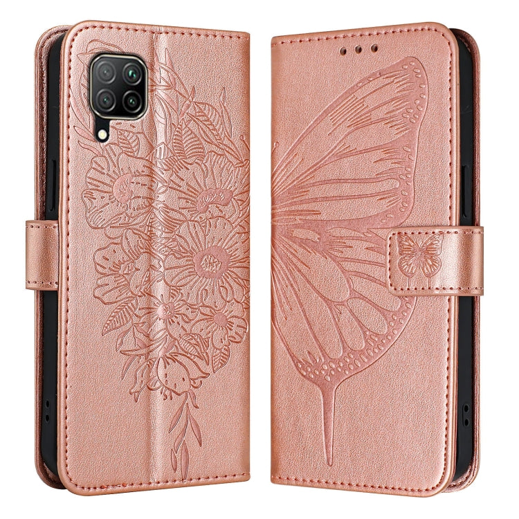Funda de Cuero para Huawei P40 Lite 4G y Nova 6 Se con Mariposa en Relieve (Oro Rosa)