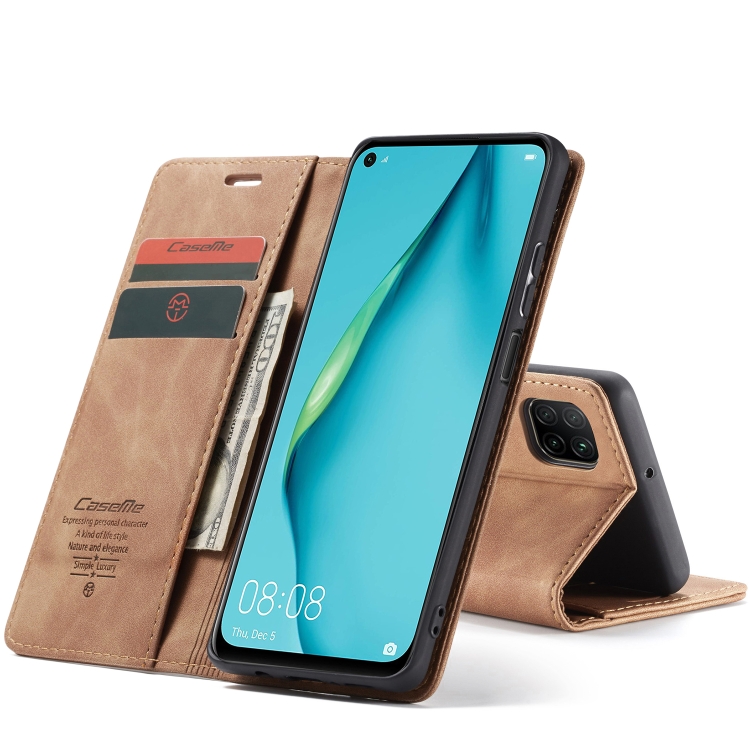 Para Huawei P40 Lite CaseMe-013 Estuche de cuero con tapa horizontal multifuncional con ranura para tarjeta, soporte y billetera (marrón)