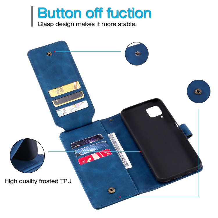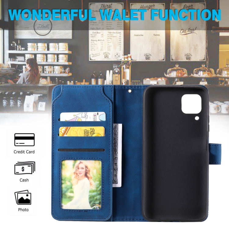 Para Huawei P40 Lite Sientir la piel de la piel Horizontal Flip PU Funda de cuero con soporte y tragamonedas de tarjetas múltiples y billetera y lanyard y marco de fotos (azul)