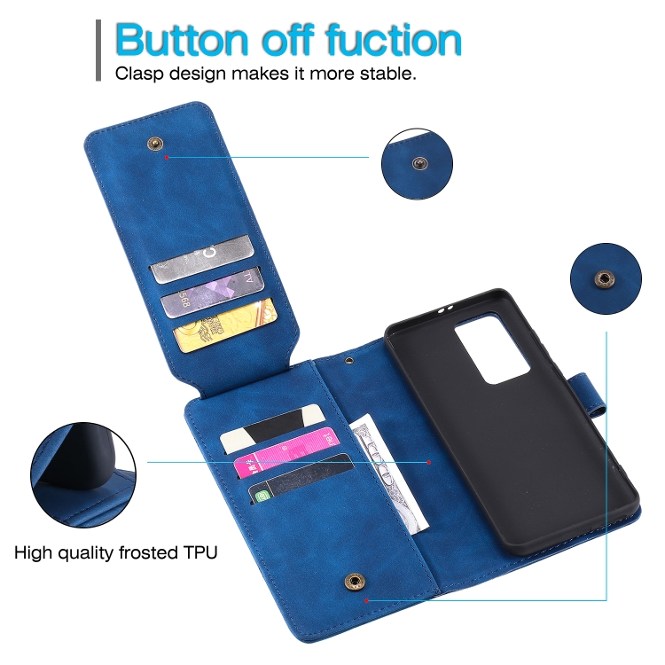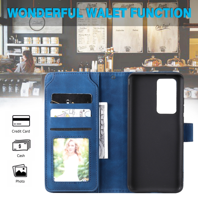 Para HUAWEI P40 PROY PIEL Sienta la funda de cuero Horizontal Flip PU con el soporte y las ranuras de las tarjetas múltiples y la cartera y el marco de la foto (azul)