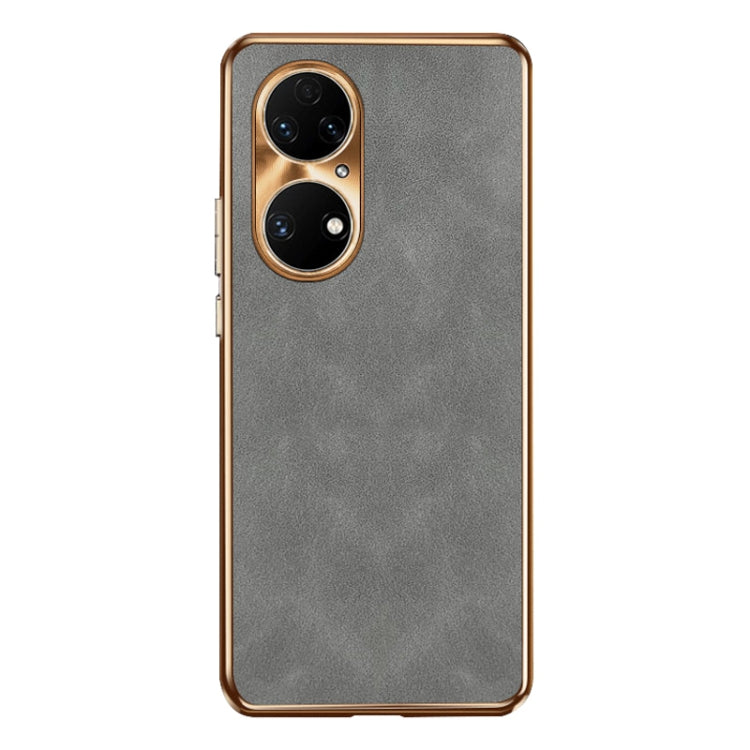 Funda de Cuero Piel de Cordero Galvanizada para Huawei P50 (Gris)