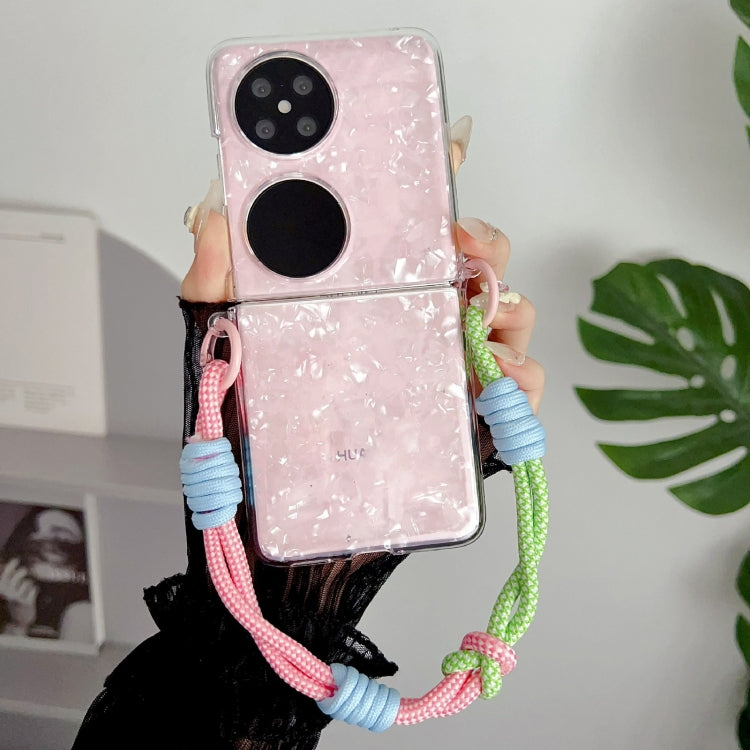 - 1x Funda para Huawei P50 con hebilla Lateral y textura de concha nacarada con pulsera de arcoíris (Rosa)