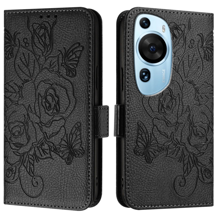 - 1x Funda de Cuero Antirrobo para Huawei P60 Art Embossed Rose con RFID (Negro)