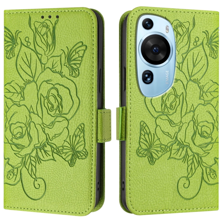 - 1x Funda de Cuero Antirrobo para Huawei P60 Art Embossed Rose con RFID (Verde)