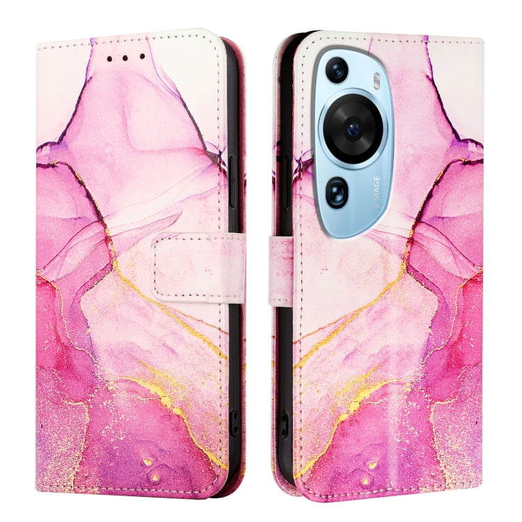 Funda de Cuero con Tapa para Huawei P60 Art Pt003 con Patrón de Mármol (Rosa Púrpura Dorado)