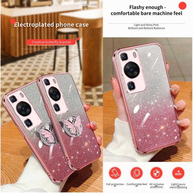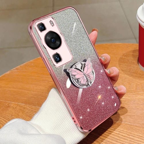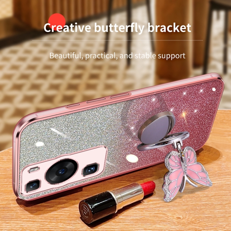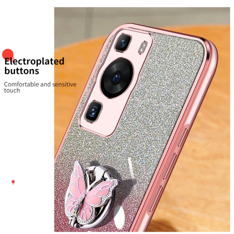 Funda TPU para Huawei P60 con Soporte de Mariposa y Brillo Degradado (Rosa)