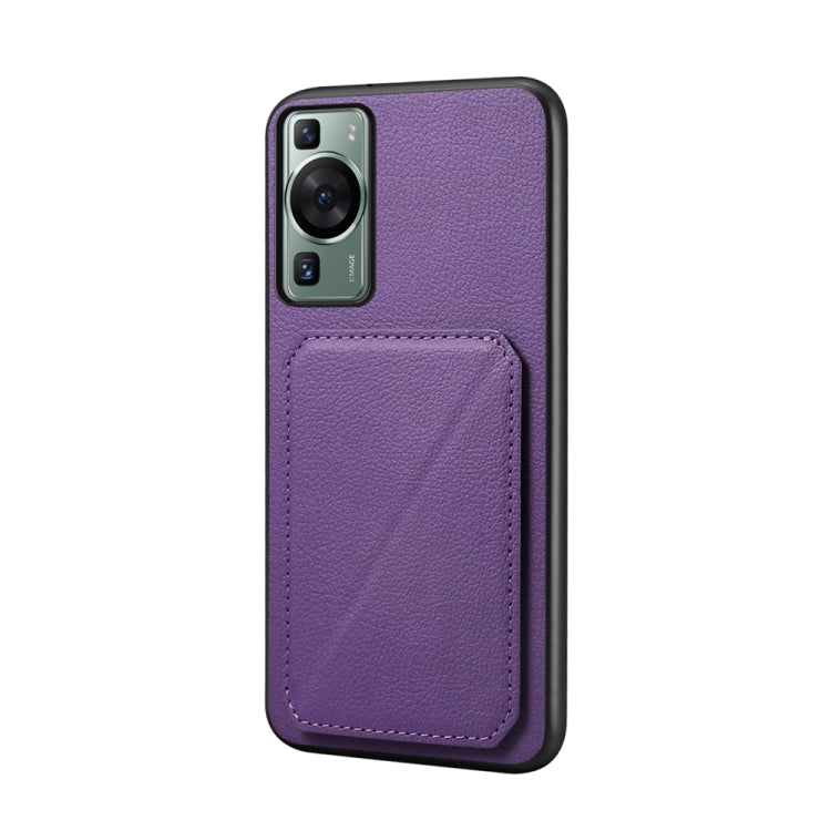 Funda para Huawei P60 / P60 Pro D04 con Ranura para Tarjeta Dual y Textura de Pantorrilla (Púrpura)
