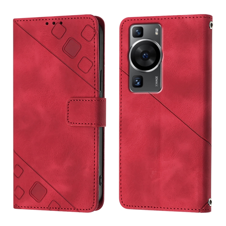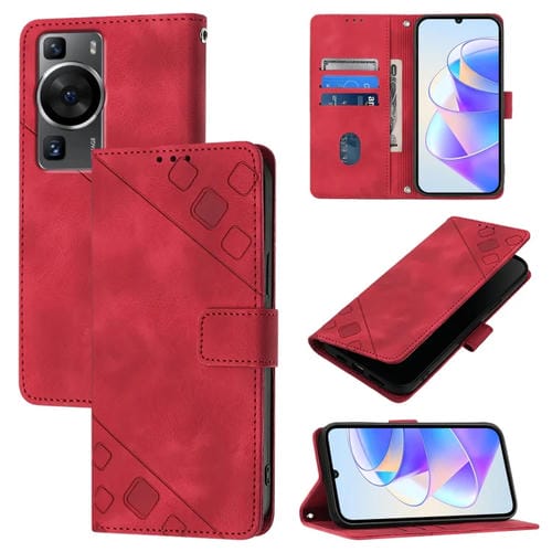 Funda de Cuero para Huawei P60 / P60 Pro Skin Feel Teléfono En Relieve (Rojo)