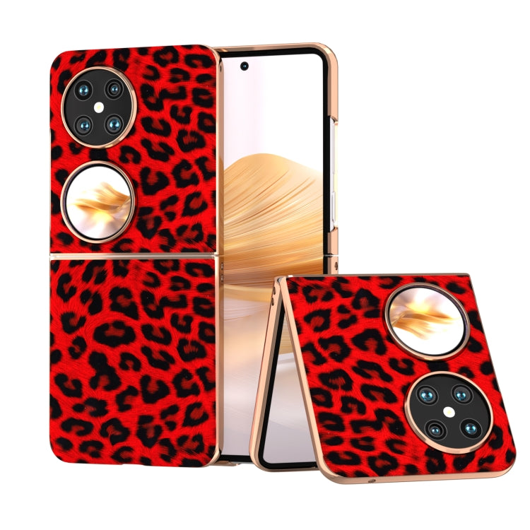 Funda para Teléfono Huawei Pocket 2 Estampado de Leopardo Nanochapado (Rojo)