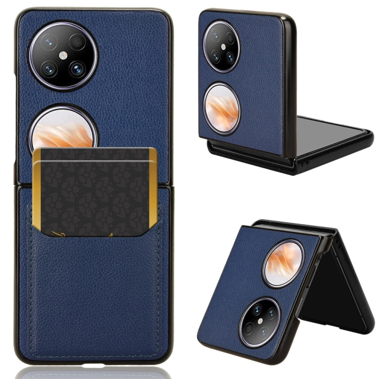 Funda para Huawei Pocket 2 con Ranuras para Tarjetas y Textura Litchi (Azul)