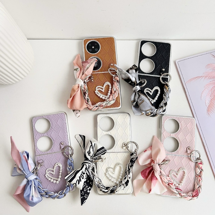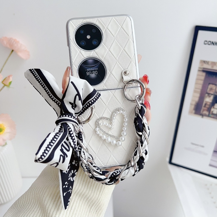 Funda para Huawei Pocket 2 con Textura de Cuero Rombo y Pulsera en Forma de Corazón a Prueba de Golpes (Blanco)