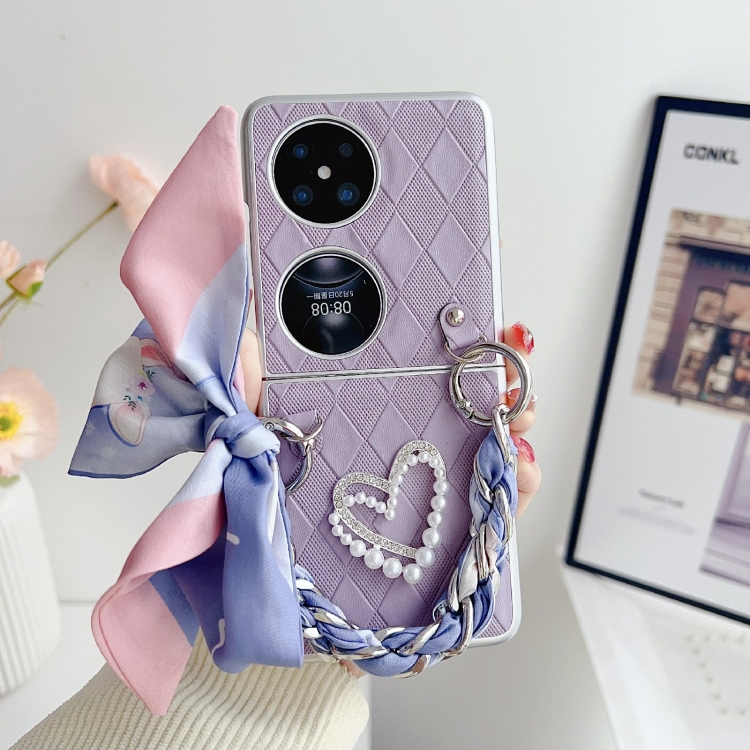 Funda para Huawei Pocket 2 con Textura de Cuero Rombo, Bufanda y Pulsera en Forma de Corazón a Prueba de Golpes (Púrpura)