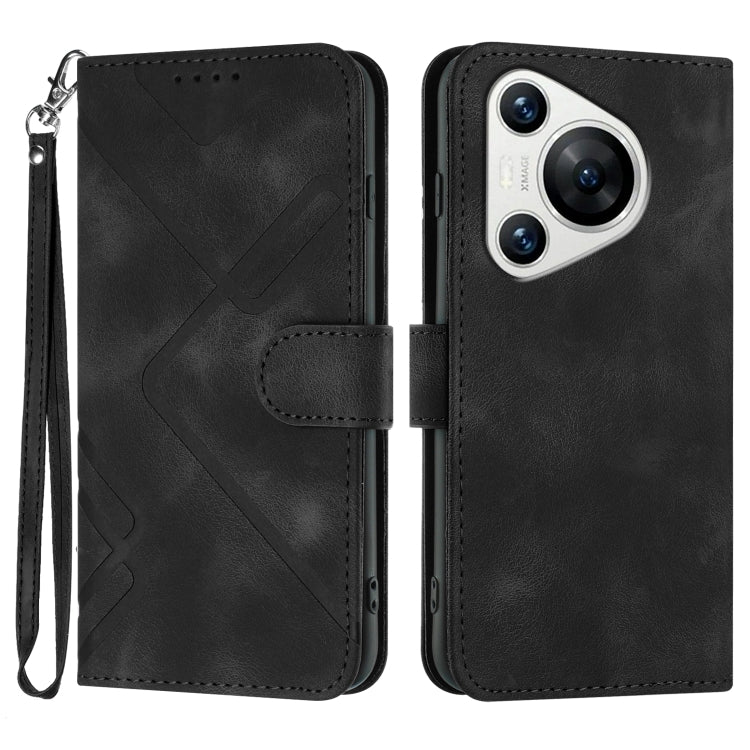 Funda de Cuero para Huawei Pura 70 con Sensación de Piel y Patrón de Línea (Negro)