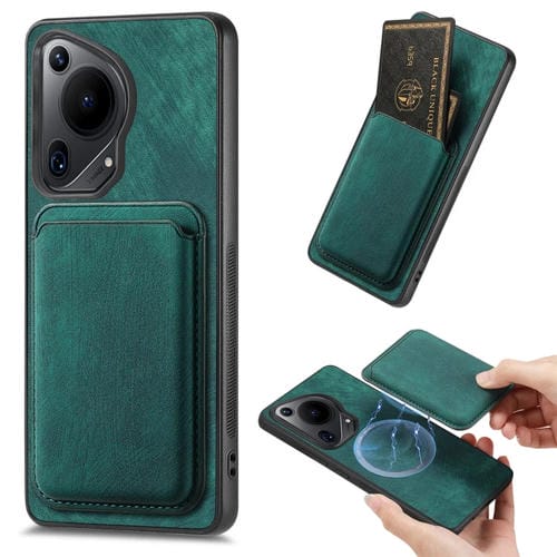 Funda Magnética para Huawei Pura 70 con Bolsa de Tarjeta de Cuero Ultra Retro (Verde)