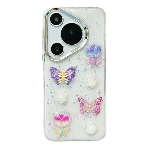 Funda TPU para Huawei Pura 70 Pro 3D con Mariposa de Cristal Colorida (Flores)