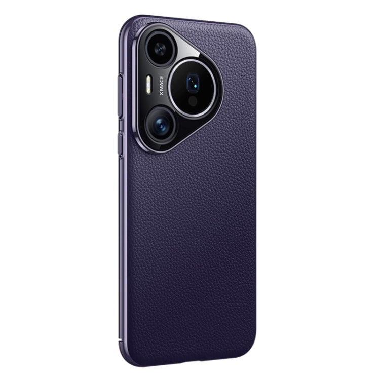 Funda para Huawei Pura 70 Pro y Pro+ de Cuero Genuino con Textura Litchi (Púrpura Oscuro)