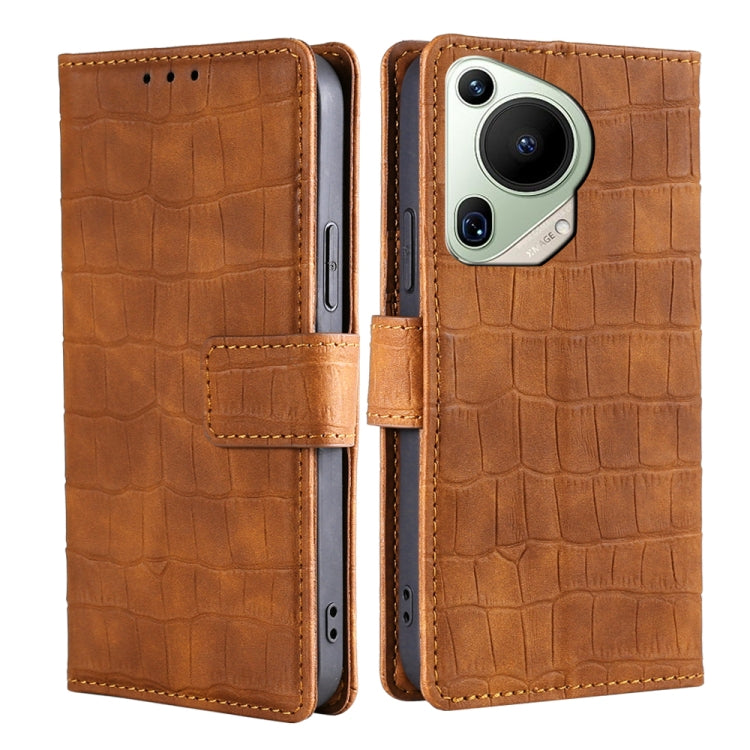 Funda para Huawei Pura 70 Ultra 5G de Cuero con Cierre Magnético y Piel de Cocodrilo (Marrón)