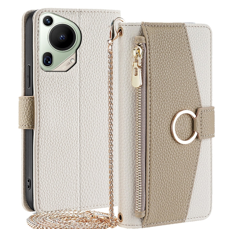 Funda para Huawei Pura 70 Ultra 5G de Cuero con Textura Litchi Cruzada (Blanco)