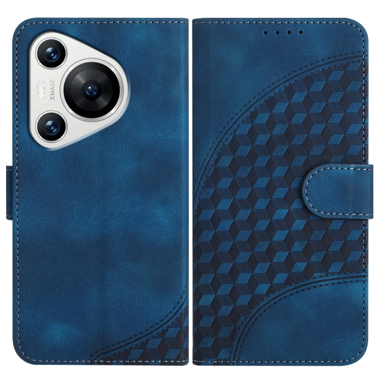 Funda de Cuero Huawei Pura 70 Yx0060 con Relieve y Cabeza de Elefante con Cordón (Azul)