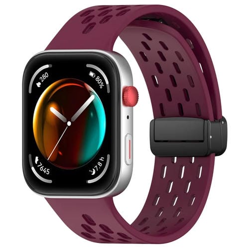 Correa de Silicona para Huawei Watch Fit3 Holes Style con Hebilla Magnética Plegable (Rojo Vino)