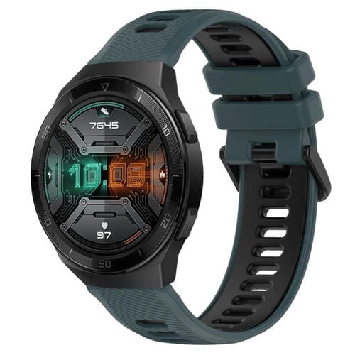 Correa de silicona deportiva para Huawei Watch GT 2E 22mm (Verde oliva + Negro)