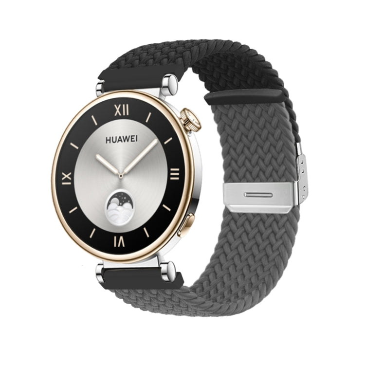 For Huawei Watch GT4 41mm Braided Nylon Watch Band with Built-in Buckle (Black+Gray)