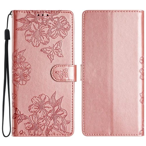 - 1x Funda para Huawei Y6P Cherry Blossom Butterfly Skin Feel de PU en Relieve (Oro Rosa)