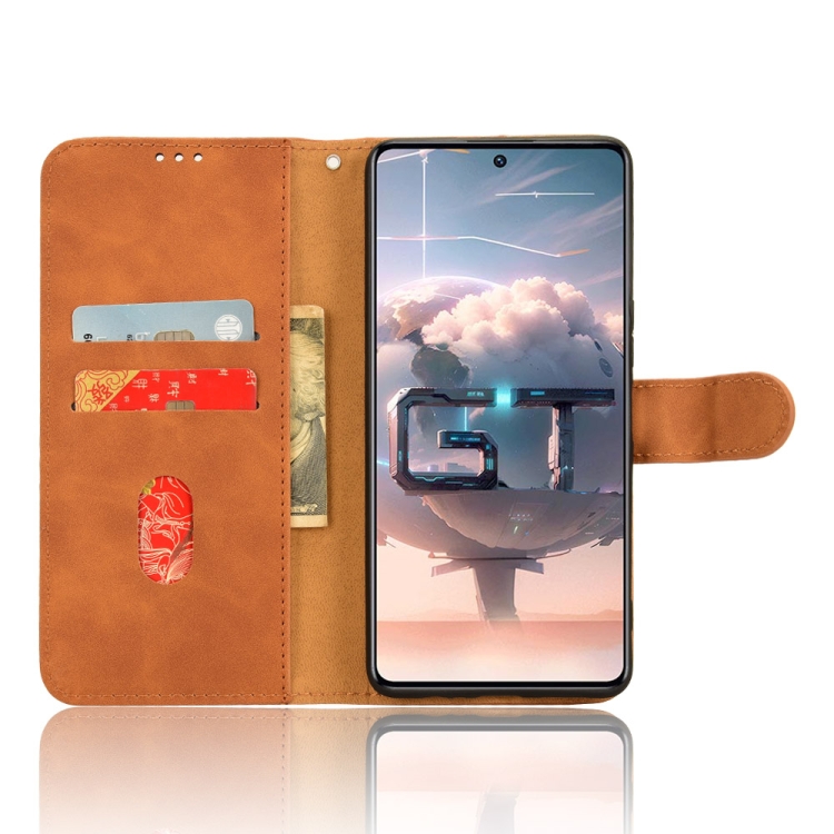 Funda de Cuero para Infinix Gt 10 Pro con Tapa Magnética Skin Feel (Marrón)