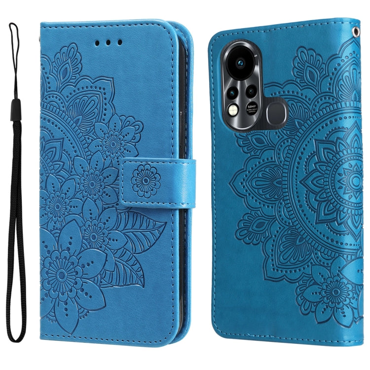 Funda Flip Leather para Infinix Hot 11S Flores de 7 Pétalos (Azul)