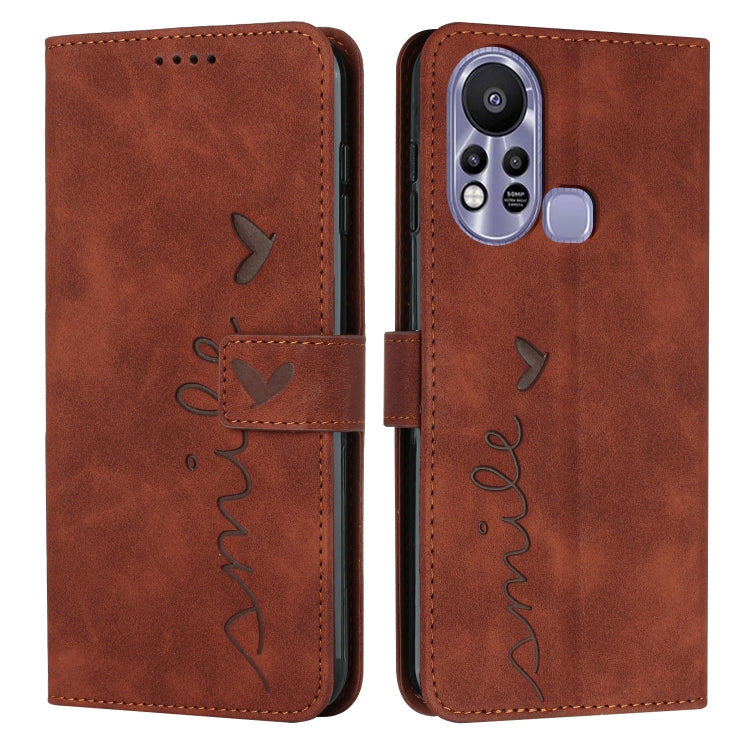 Funda para Infinix Hot 11S Skin Stent con Patrón de Corazón de Cuero (Marrón)