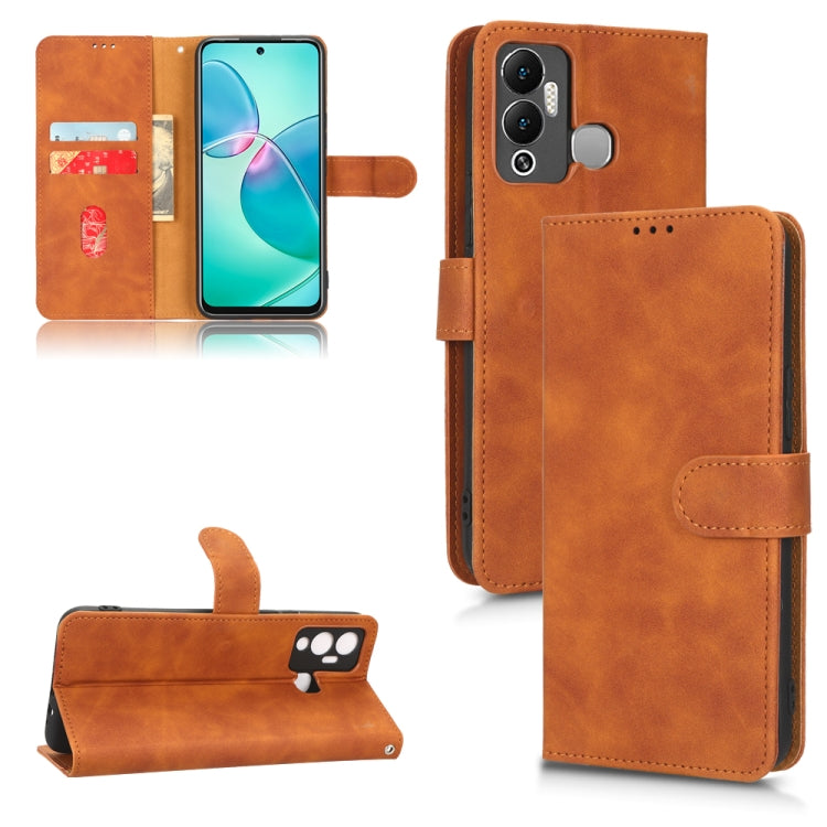 Funda de Cuero Flip Magnética Skin Feel para Infinix Hot 12 Play (Marrón)