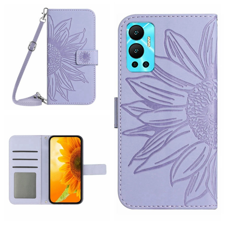 Funda Flip de Cuero para Infinix Hot 12 con Cordón y Diseño Sun Flower (Púrpura)