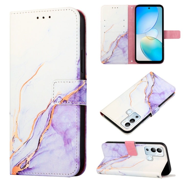 Funda de Cuero con Tapa para Infinix Hot 12I X665 Pt003 Patrón de Mármol (Blanco Púrpura)