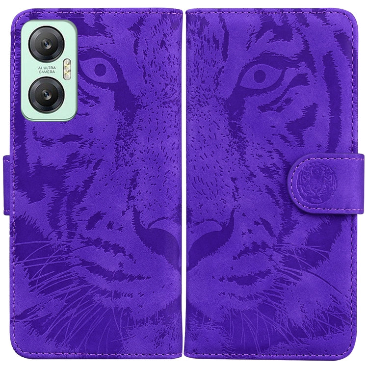 Funda de Cuero para Infinix Hot 20 5G con Estampado de Tigre en Relieve (Púrpura)