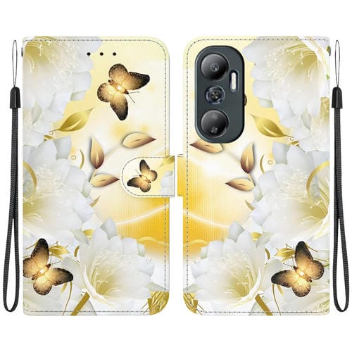 Funda de Cuero para Infinix Hot 20 con Dibujo Coloreado y Textura de Cristal (Epiphyllum de Mariposa Dorada)