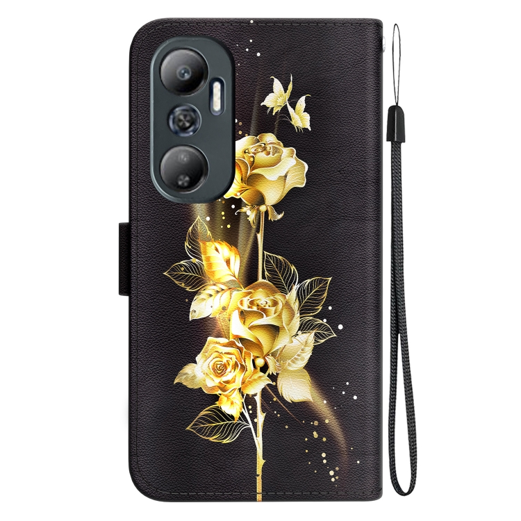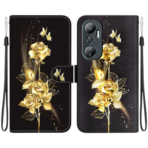 Funda de Cuero para Infinix Hot 20 con Dibujo Coloreado y Textura de Cristal (Mariposa Dorada Rosa)