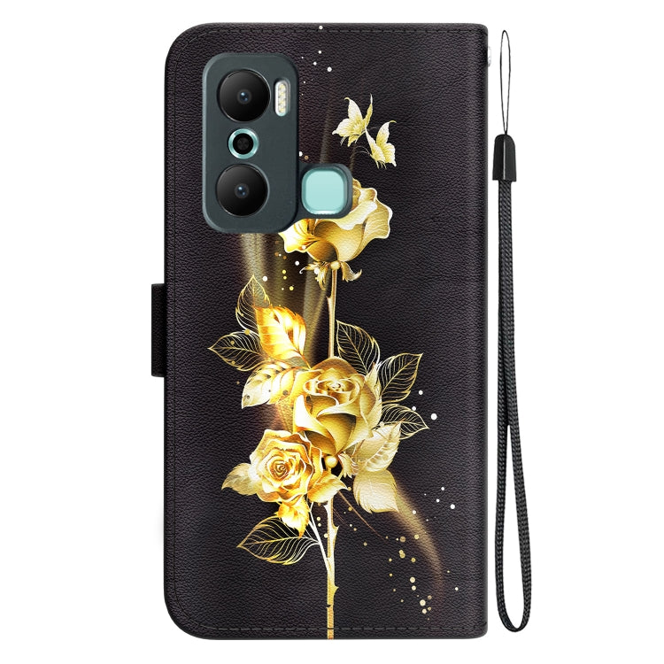 Estuche de Cuero para Infinix Hot 20 Play con Dibujo Coloreado y Textura de Cristal (Mariposa Dorada Rosa)