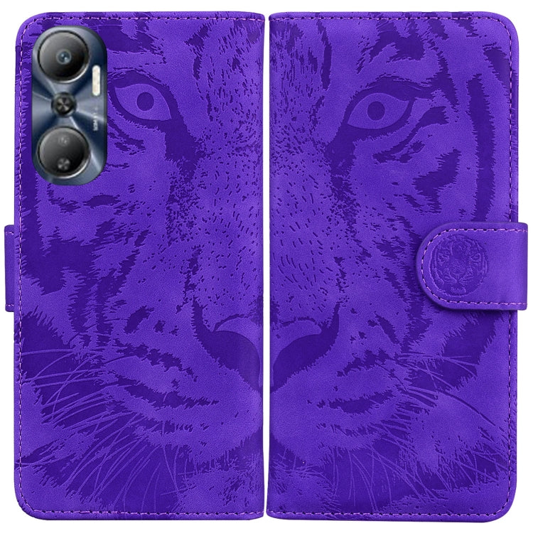 Funda de Cuero para Teléfono Infinix Hot 20 Tiger con Relieve Patrón (Púrpura)