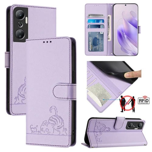 Funda para Infinix Hot 20 X6826 Cuero RFID con Patrón en Relieve y Cordón (Púrpura)