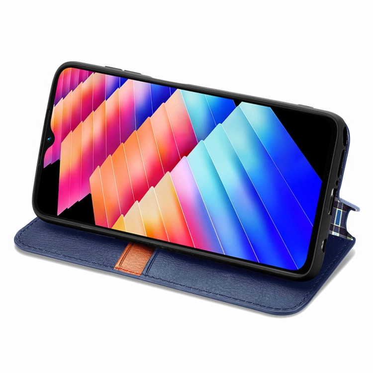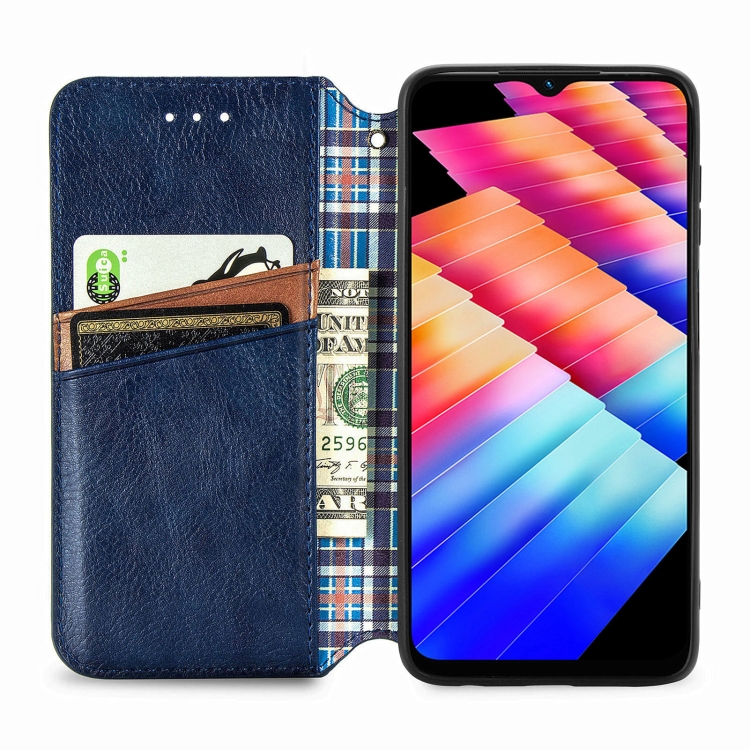 Funda de Cuero Magnético Prensado para Infinix Hot 30I Cubic Grid (Azul)