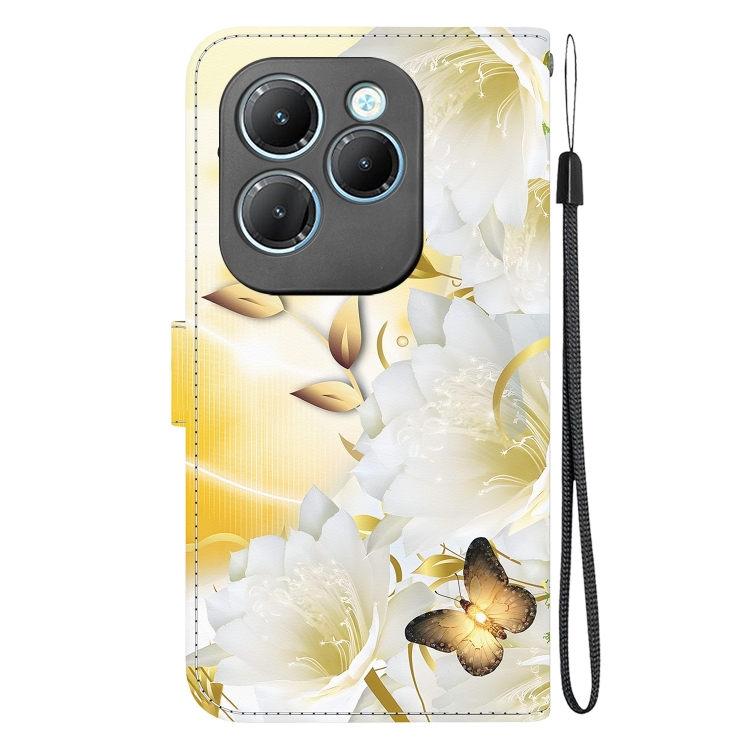 Funda de Cuero para Infinix Hot 40/40 Pro con Dibujo Coloreado y Textura de Cristal (Epiphyllum Mariposa Dorada)