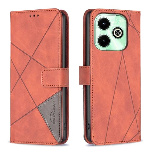 Funda de Cuero para Infinix Hot 40/40 Pro con Textura de Rombo y Hebilla Magnética (Marrón)